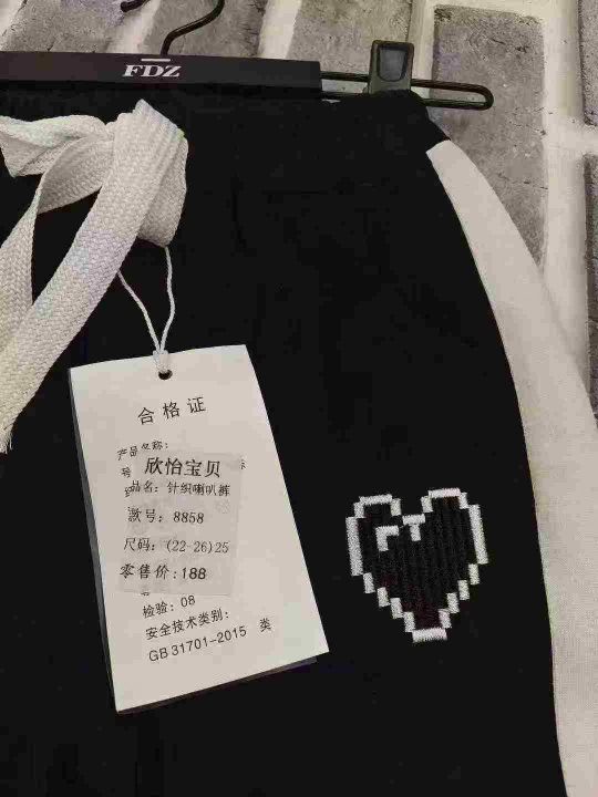 女童针织喇叭卫裤 数量300件左右 尺码22--26(相当于110--150)中间码比较少 两个小整款 两个颜色 内里包边 独立包装带吊牌 货品整洁质佳