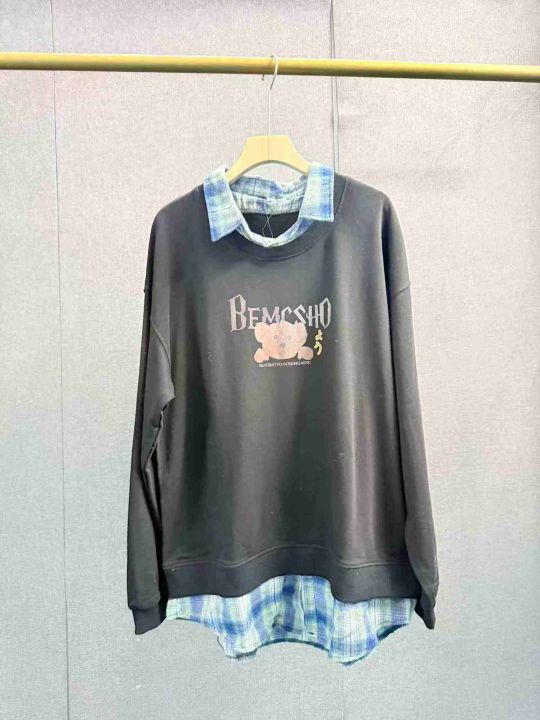 格子拼接假两件新款卫衣少女春秋季初中高中学生宽松洋气,纯棉毛圈,独立包装,S _3 x码,800件左右,清8.8