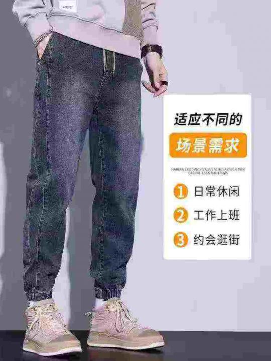 美式高街牛仔裤男士潮牌百搭休闲宽松束脚哈伦长裤198...