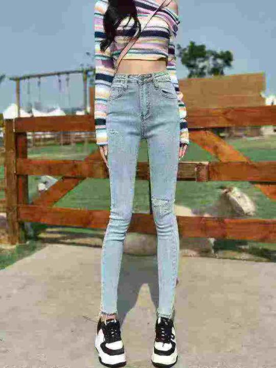 破洞牛仔裤子女高腰紧身弹力小个子显瘦毛边小脚裤210条全清8.8元,码数XS到XL,独立包装,高弹力[庆祝][庆祝][庆祝]