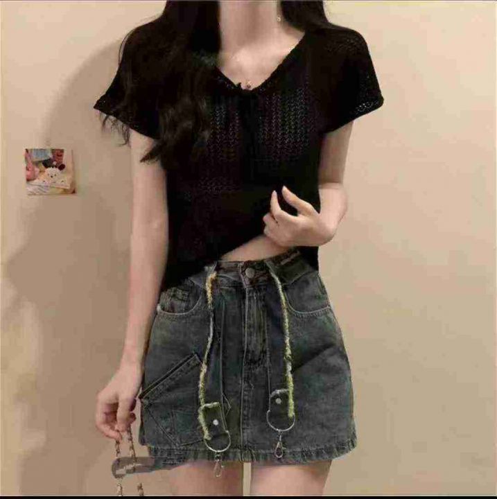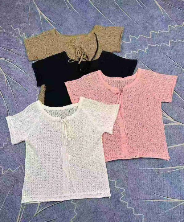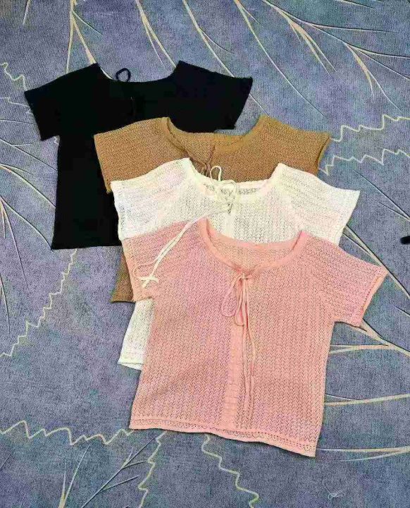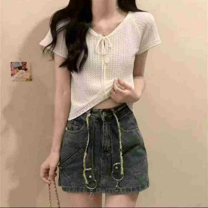 夏季洋气百搭薄款镂空针织设计感小众独特绑带针织小衫,独立包装,900件,清6.8,分➕1