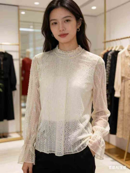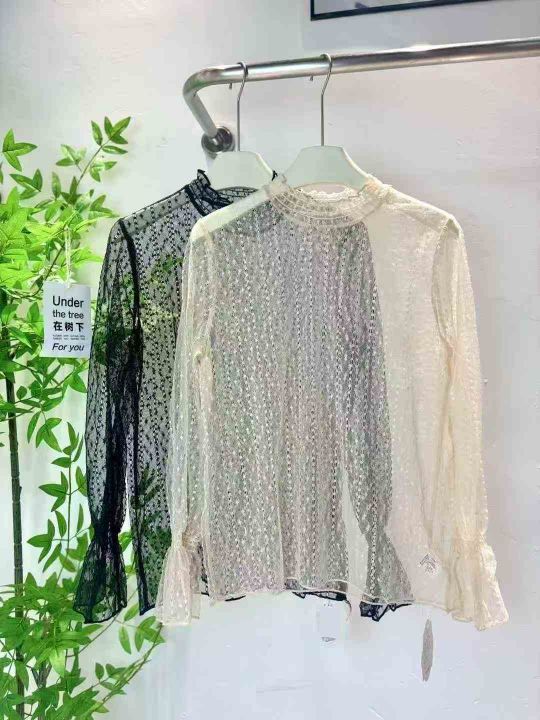 75件半高领镂空蕾丝打底衫女洋气长袖内搭超仙网纱上衣...