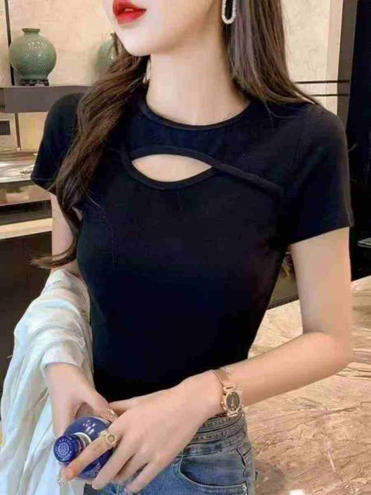☆5.8元,冰丝镂空辣妹T,夏季修身显瘦时尚百搭女装短袖,130件,1-5码,冰...