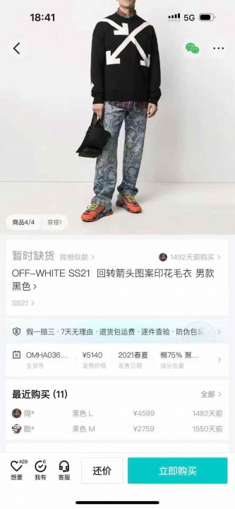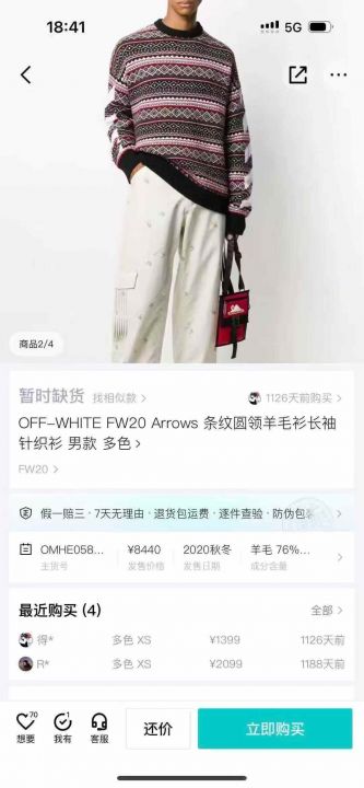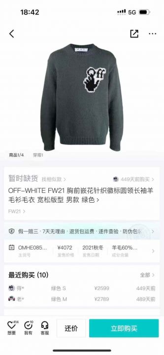 1700多件OFF毛衣。 货号:32539