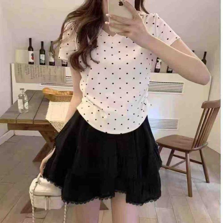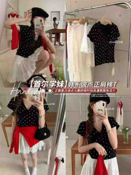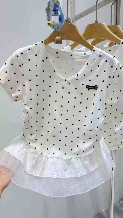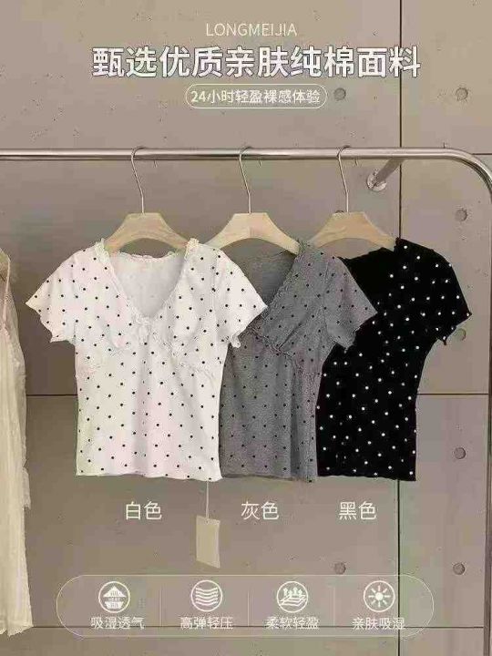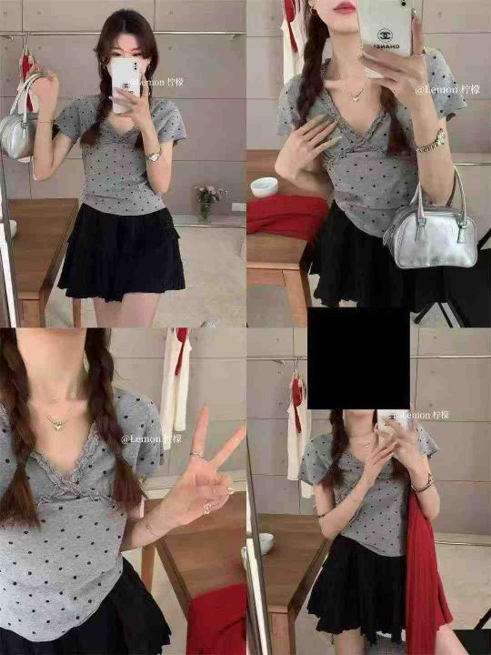 软fufu的波点小衫太戳少女心啦!粉/灰/白/黑多色可选,V领+侧边抽褶/蕾丝花边/下摆纱裙等设计,显瘦又灵动。亲肤面料透气舒适,短款版型显高,搭配裤裙都超甜,日常约会都适配,温柔感拉满~