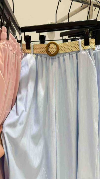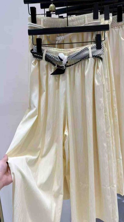全部都有腰带/皮带!九分长度,面料很轻薄!适合春夏!顺滑垂坠面料自带凉感,松紧腰设计不挑身材,搭配不同腰带解锁多种风格。阔腿版型藏肉显瘦,走路带风又飘逸,轻松拿捏温柔气质~