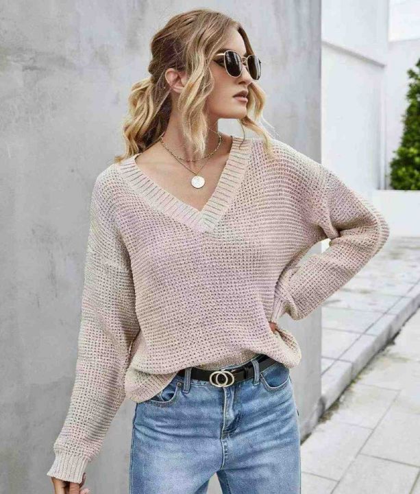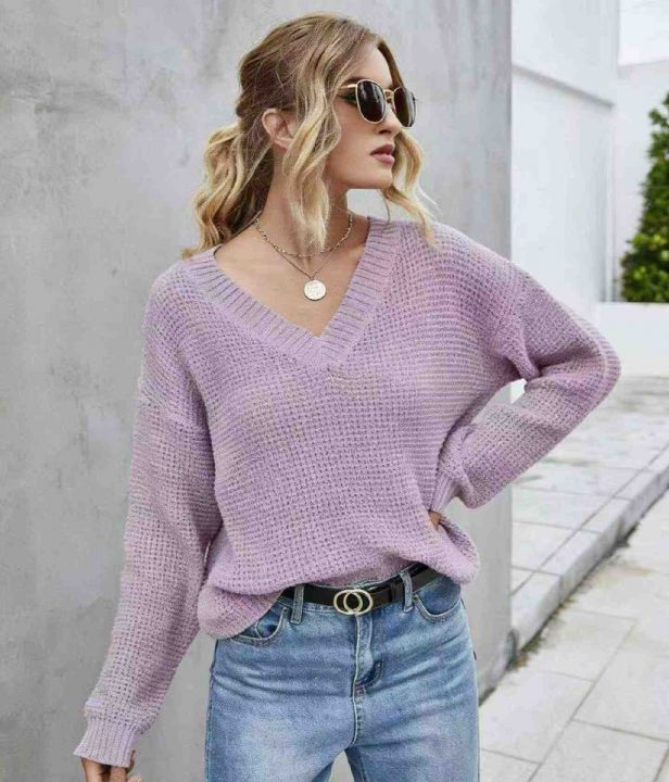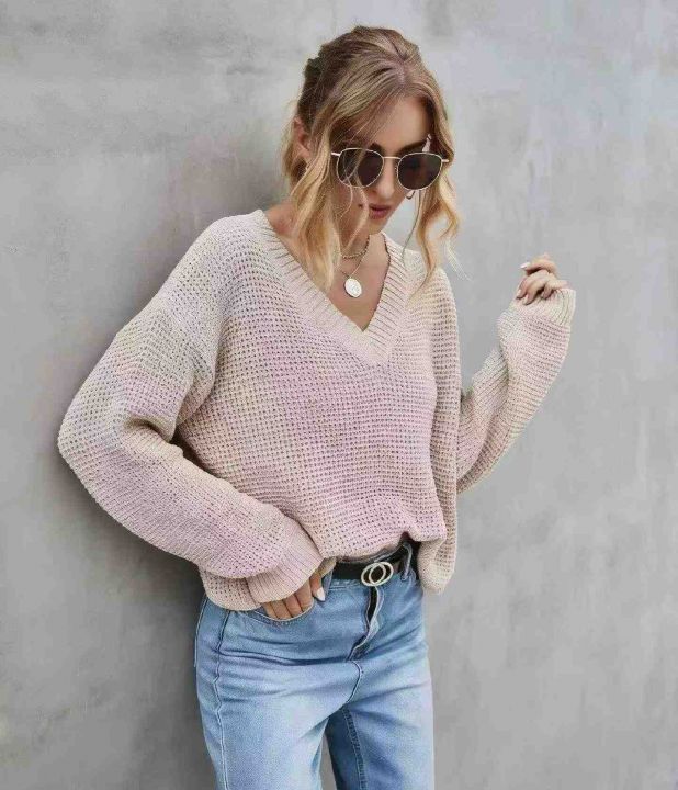 春季新款品牌外贸原单美式净版简约V领套头毛衣,独立...