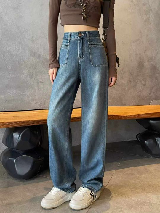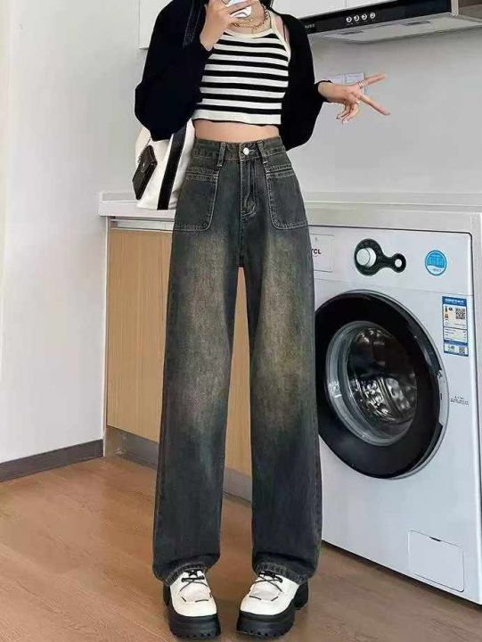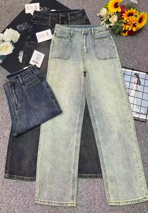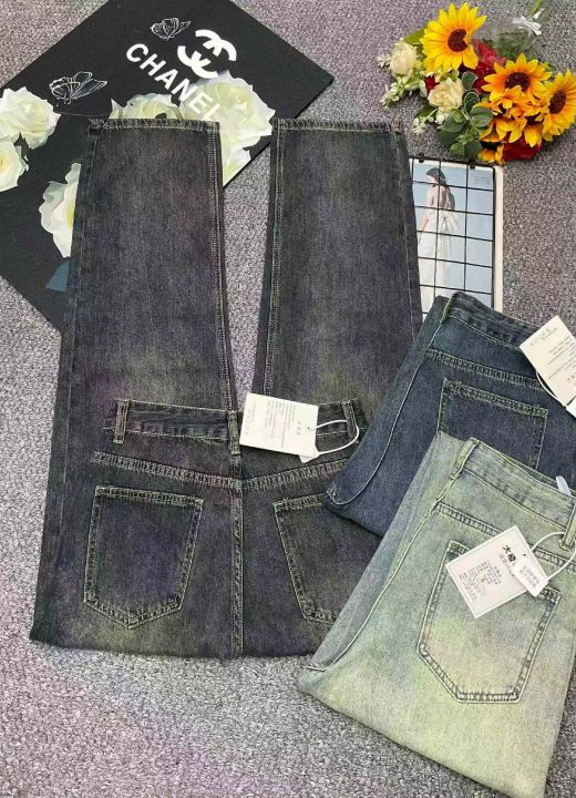春季新款品牌原单复古洗水棉网红直筒阔腿牛仔裤,独立...
