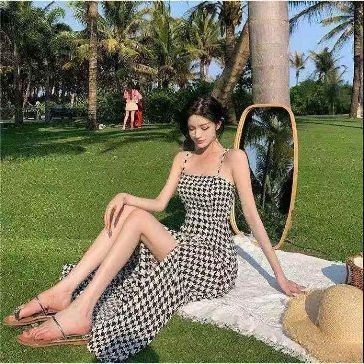 气质格子吊带连衣裙 274件,全清8.8元,货品干净,正品独立包装,码数~M到XL,格子长裙连衣裙2026显瘦夏季吊带女设计感新款收腰开叉潮气质