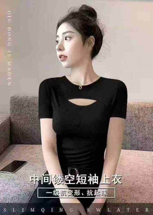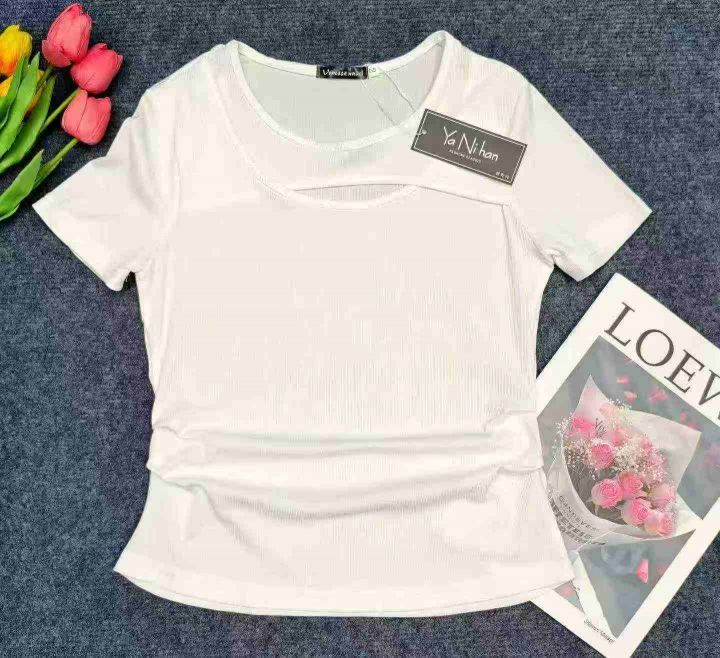 ☆5.8元,冰丝镂空辣妹T,夏季修身显瘦时尚百搭女装短袖,130件,1-5码,冰丝罗纹面料,独立包装吊牌,全清5.8元