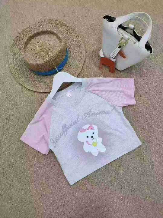 [月亮]:撞色小狗图案棉质辣妹T恤