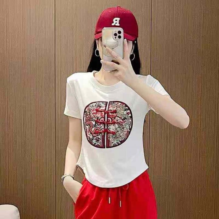 ☕️新中式刺绣独特别致上衣女夏季装大码宽松正肩辣妹T恤280件全清6.8元,码数S到XL,单款白色,纯棉国风工艺款[庆祝][庆祝][庆祝]