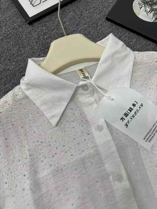 ☕️当季热销款烫钻衬衫380件全清9.8元,均码,单款白...