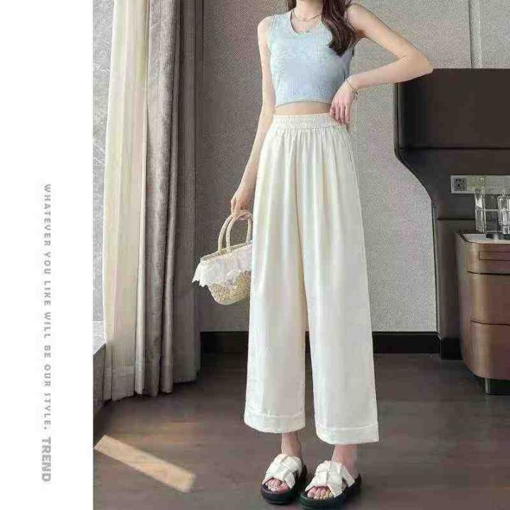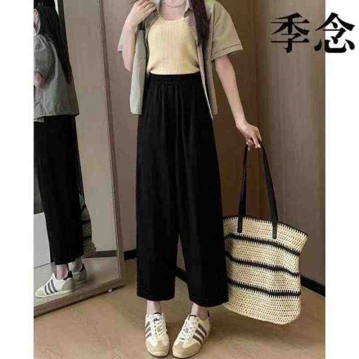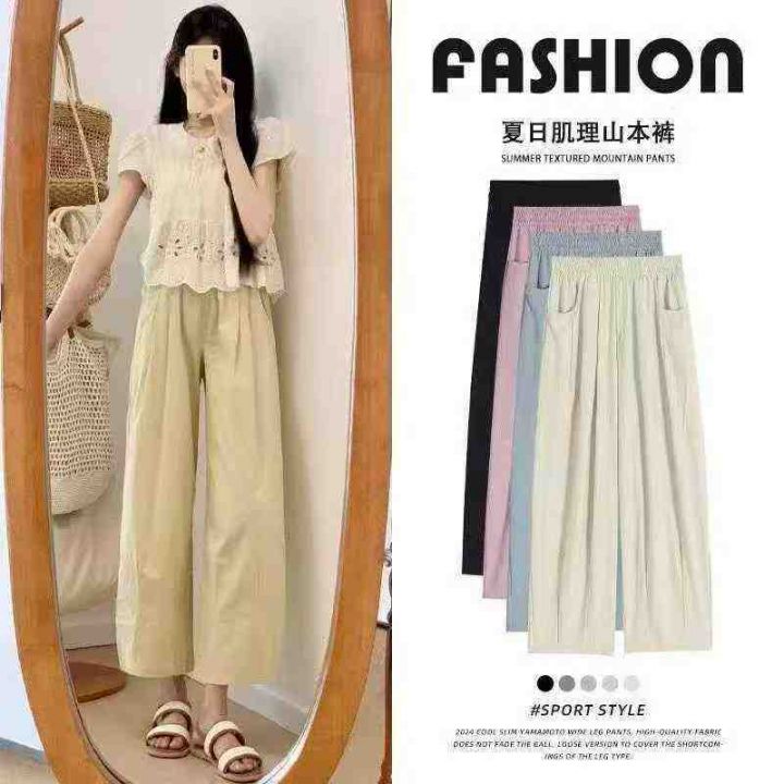 山本阔腿裤女夏季薄款高腰宽松卷边小个子九分直筒裤,...