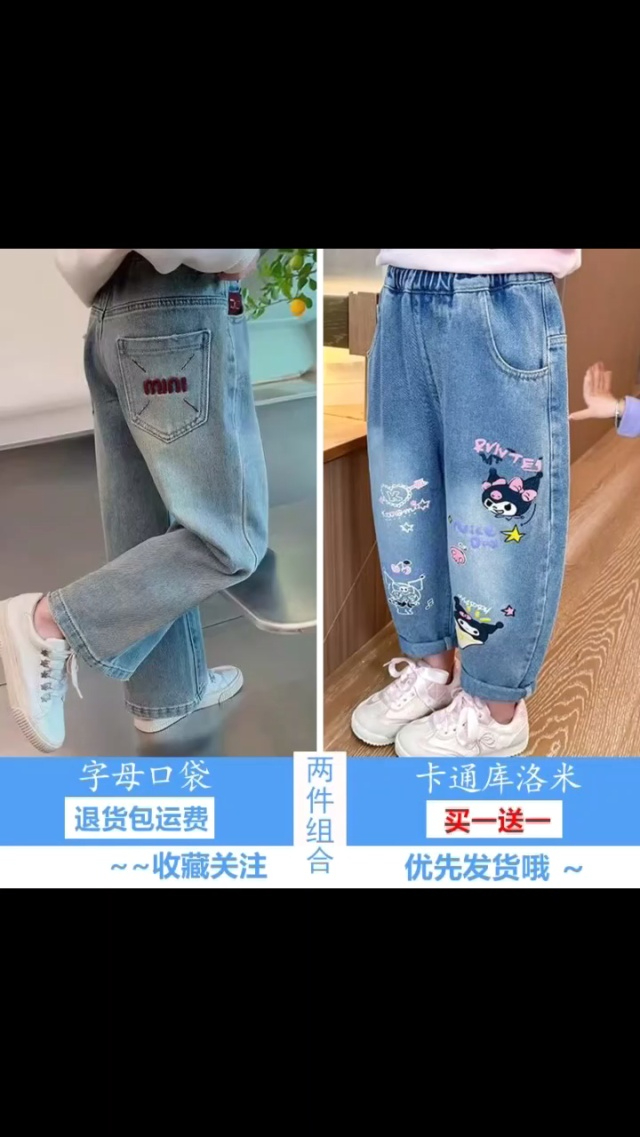[發]童装牛仔裤1700件独立包装 码数90到150款式小整带杂 松紧腰全...