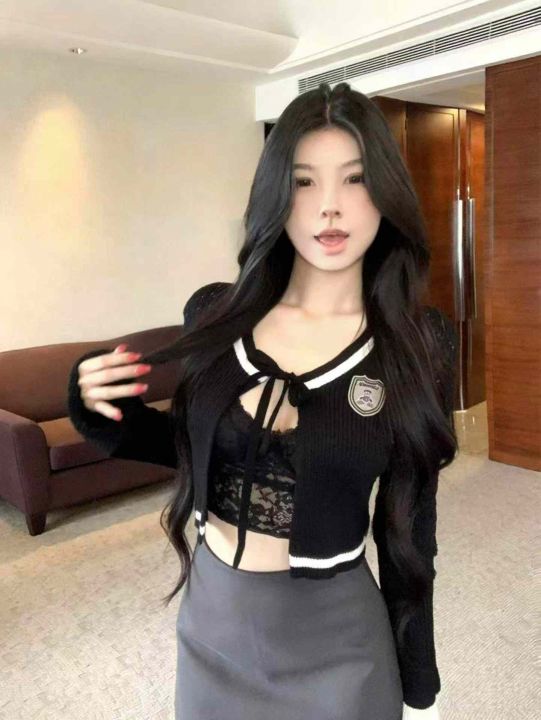 韩系短款针织外套女设计感系带学院风外搭上衣,独立包装,420件,清5.8,分...