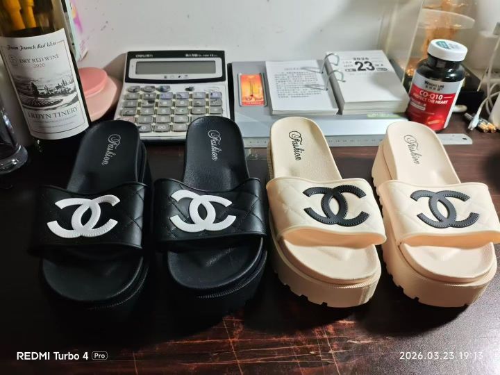 轻奢款两色大logo香风加厚拖鞋500双,黑色/杏色,36~41码,独立膜袋包装,新货无瑕疵……