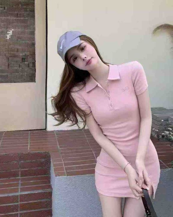 全清6.9polo领连衣裙 纯欲辣妹修身显瘦性感开叉短袖包臀裙 414条 2-5码 分...