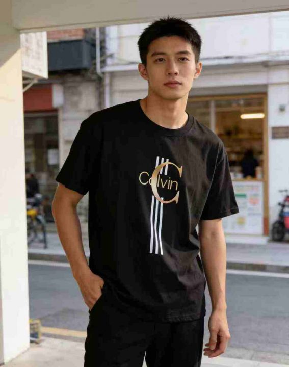 400件\'夏季潮牌Calvin字母印花短袖T恤男三条杠宽松圆领半袖ins潮流上衣,独立包装\'码数S-2XL,分货➕1,货号001#31