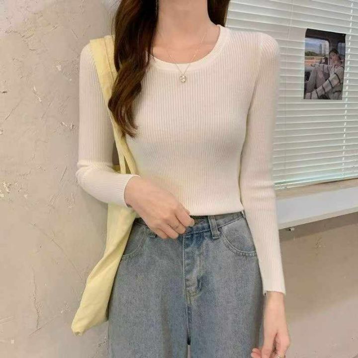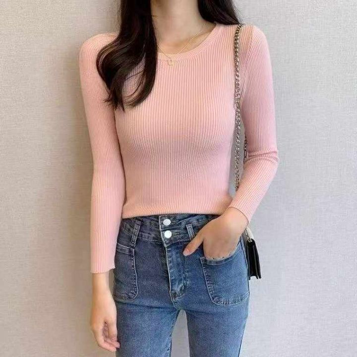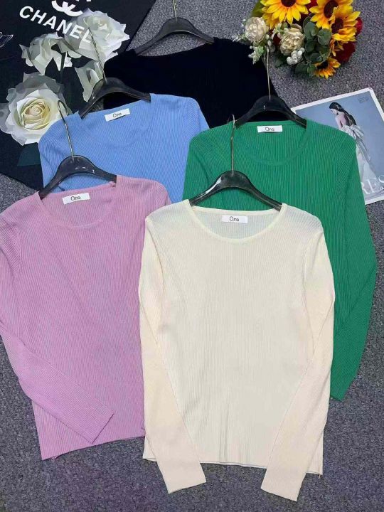 春季新款品牌原单网红净版简约多巴胺冰丝曲珠长袖针织...
