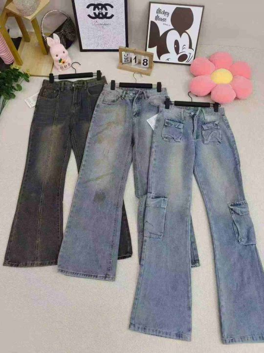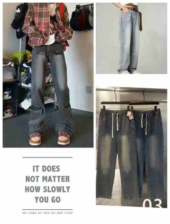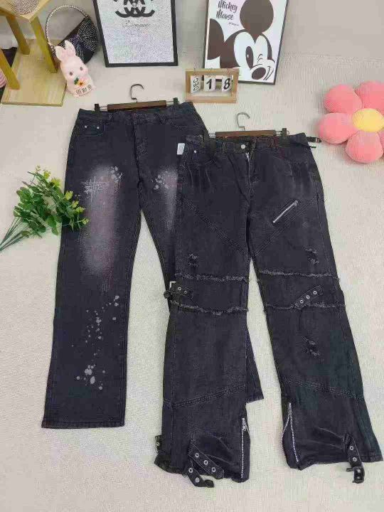 8.9清电商仓回收291件复古靓妹水洗慵懒直筒显瘦牛仔长裤,码数M-2XL。面料...