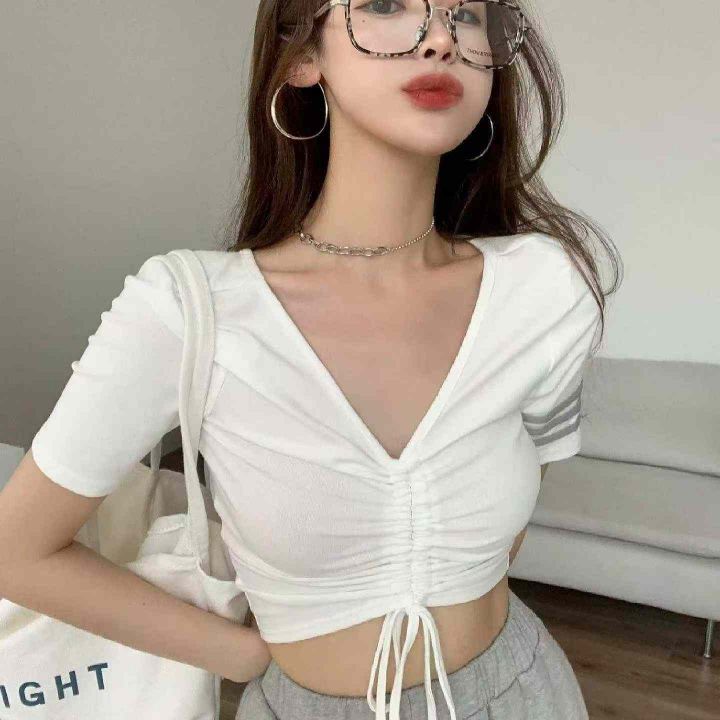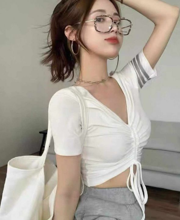 夏季新款纯欲风v领设计感抽绳小心机针织短袖小衫,独立包装,均码面料柔软舒适弹力大,765件,全清5.9元超低价秒杀!分货加一!