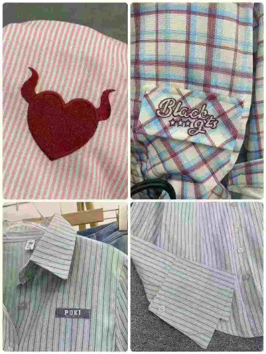 休闲条纹衬衫73件7.8,图片三个整款,字母图案刺绣/印...