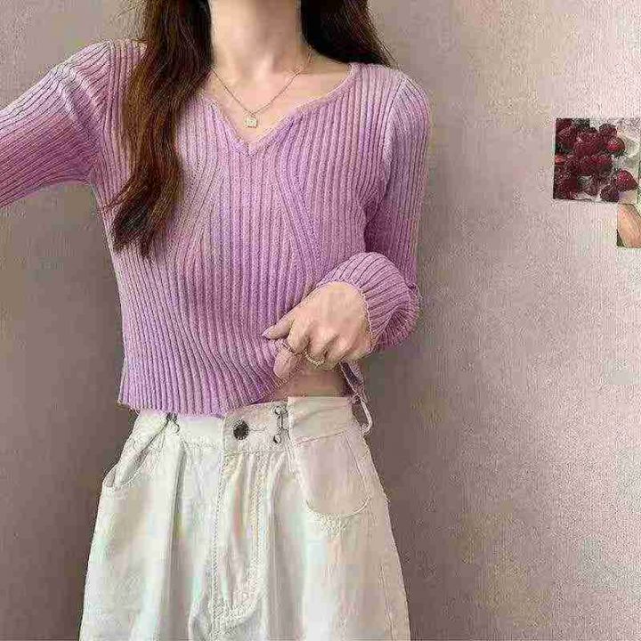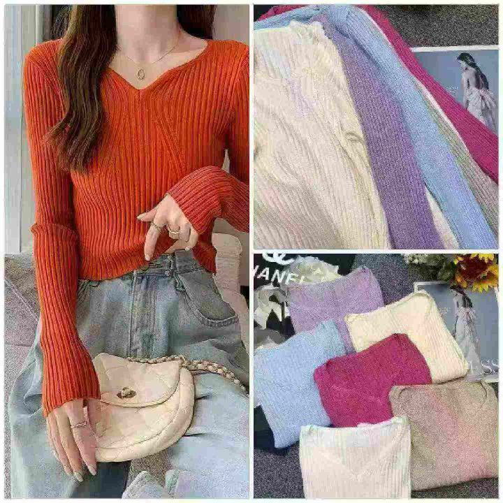 春季新款网红复古温柔风净版法式V领别致坑条包芯纱套头毛衣,独立包装,均码面料软糯舒适弹力大,1000件,单款多色,全清6.9元超低价秒杀!分货加一!