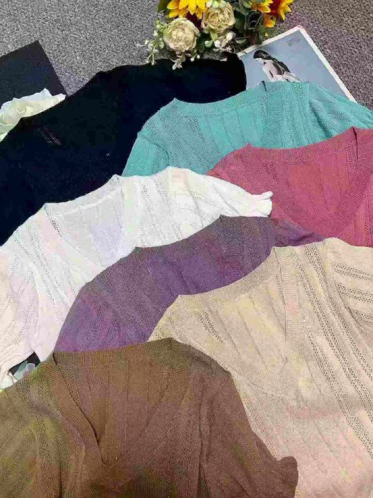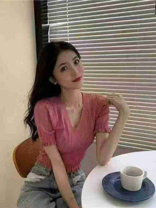 夏季新款镂韩版V领木耳边冰丝设计感高腰显瘦短款针织T桖,独立包装,均码面料柔软舒适弹力大,3560件,全清5.9元超低价秒杀!分货加一!