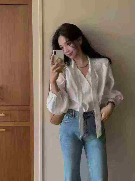 750件左右法式高级感洋气气质百搭长袖V领别致不规则绑带泡泡袖衬衫上衣,做工品质毋庸置疑,尺码S-XL,货品干净,独立包装!福利秒杀价5.8 分货6.5