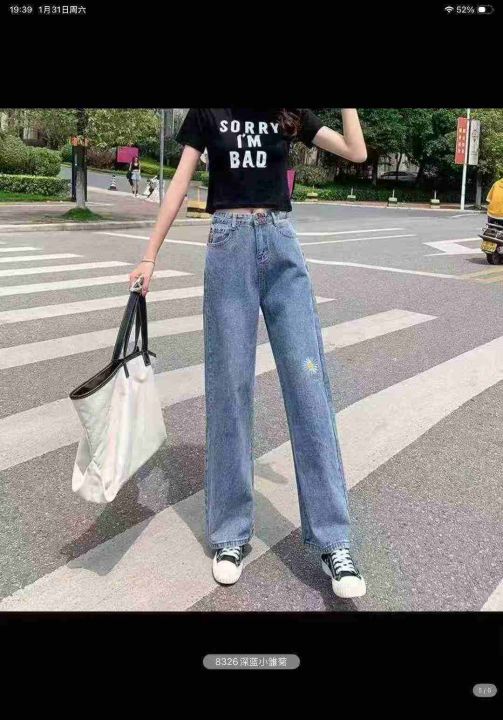 男女同款小雏菊刺绣牛仔裤子直筒阔腿萝卜宽松休闲高腰显瘦百搭牛仔裤1400件,图片系列款,独立包装带吊牌,尺码S~5XL,全清福利价9.8元,分货➕