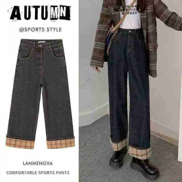 秋冬复古加绒加厚宽松显瘦牛仔裤女大码胖mm高腰直筒翻边阔腿长裤180件,独立包装带吊牌,尺码S~5XL全清福利价10.8元