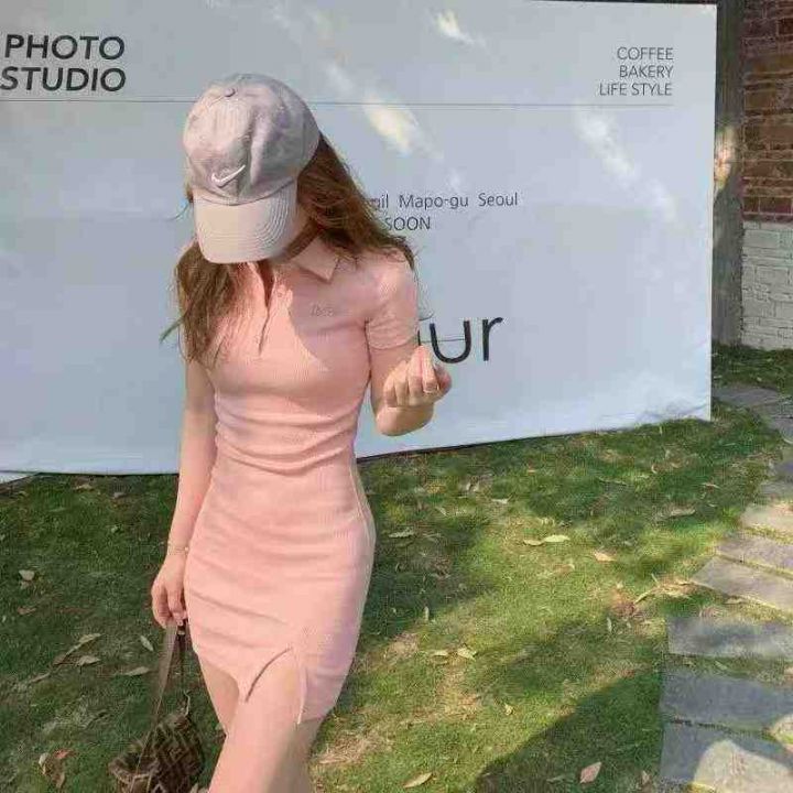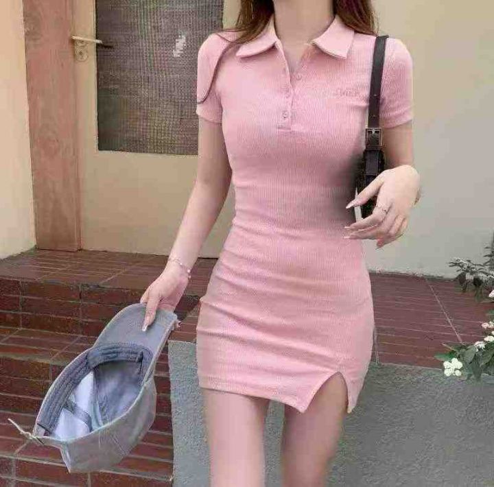 polo领连衣裙 纯欲辣妹修身显瘦性感开叉短袖包臀裙 414条 2-5码 分货➕1 独立包装 大货粉色为主, (货号322#30)