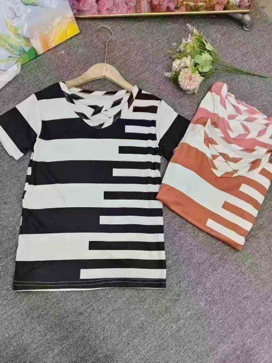 2025新款夏减龄遮肚显瘦条纹短袖女潮,整款3色,独立包装,650件左右,2-5码,4.9元清,