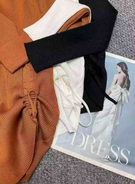 春季新款美式甜辣妹抽绳纯色设计款套头毛衣,独立包装...