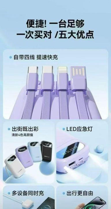 纽睿品牌 10000 毫安充电宝,带3c认证,自带 4 线, ...
