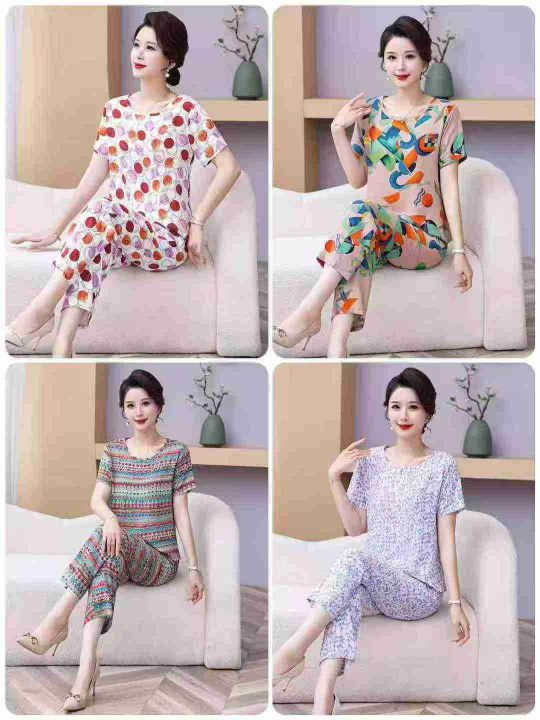 6.8清电商仓回收1350套夏季爆款中老年妈妈装套装,码...