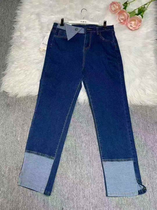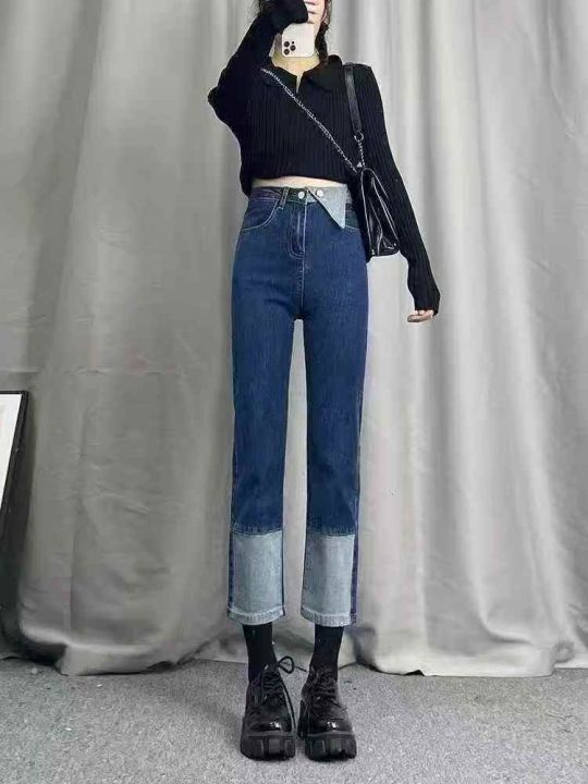 弹力九分直筒牛仔裤女秋季设计感小众烟管阔腿裤500件...