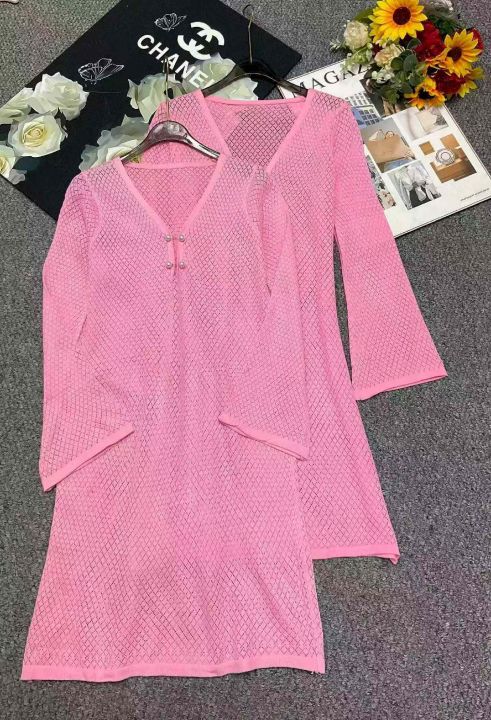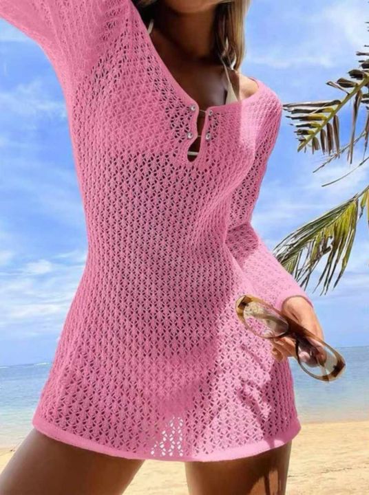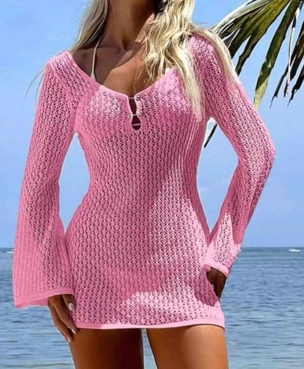 夏季新款欧美原单沙滩包臂性感针织镂空长袖爆款罩衫防晒连衣裙,独立包装,均码面料柔软舒适有弹力,1025件,全清5.9元超低价秒杀!分货加一!