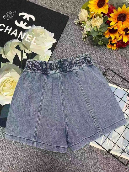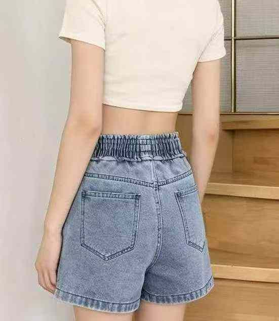 夏季新款洗水棉松紧腰宽松阔腿牛仔短裤,独立包装,码...