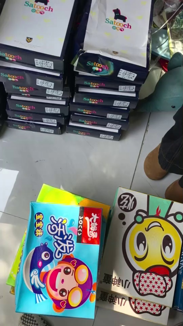 儿童盒装袜子点数打包。500双