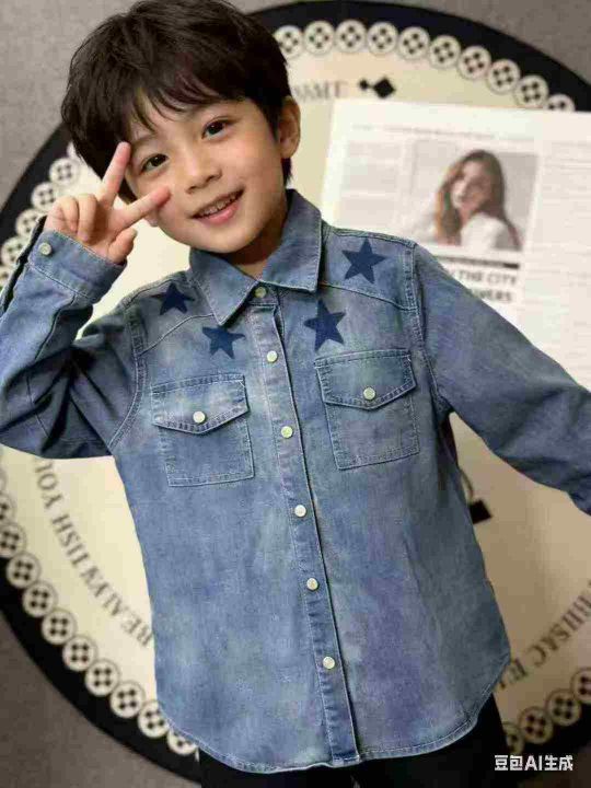 8.8清239件贝壳元素品牌中大童儿童春秋装水洗棉牛仔外套衬衫新款牛仔长袖衬...