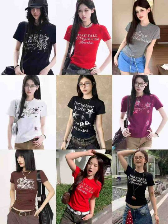 ☕️欧货新款重工烫钻辣妹T恤时尚简约款T恤180件全清8.8元,均码 高弹力,...
