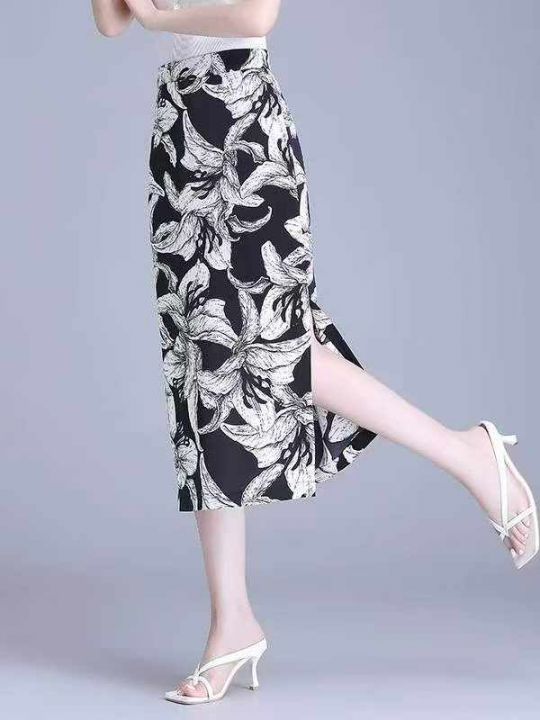 夏季新款时尚气质百搭洋气碎花开叉直筒半身长裙,独立包装,码数S-XL码,22...