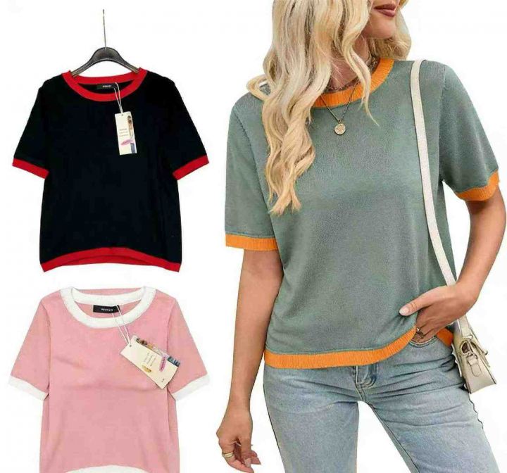 夏季新款品牌原单宽松百搭拼接撞色圆领针织短袖T桖,独立包装带吊牌,图片款2款多色大版型,码数S--XL码,1090件,全清5.9元超低价秒杀!分货加一!