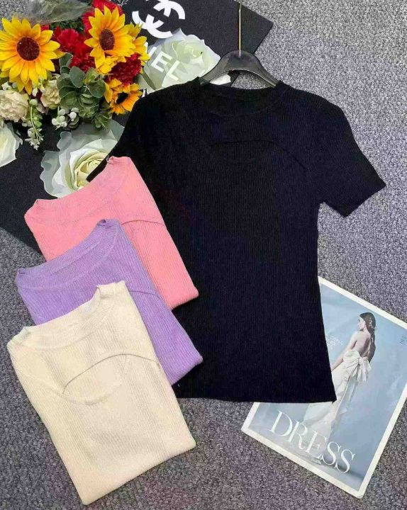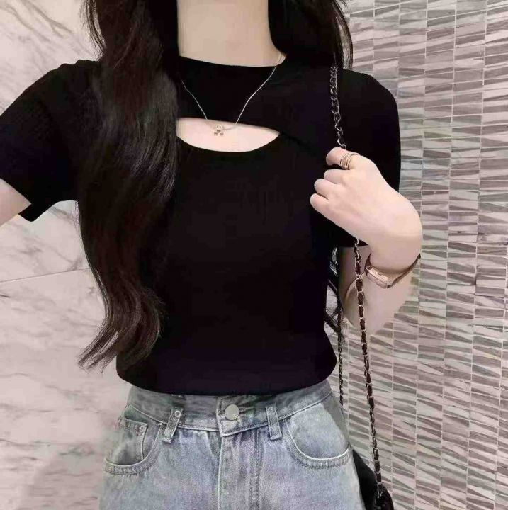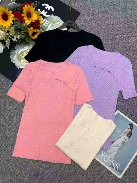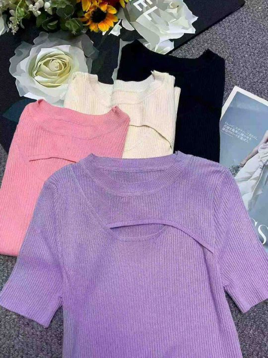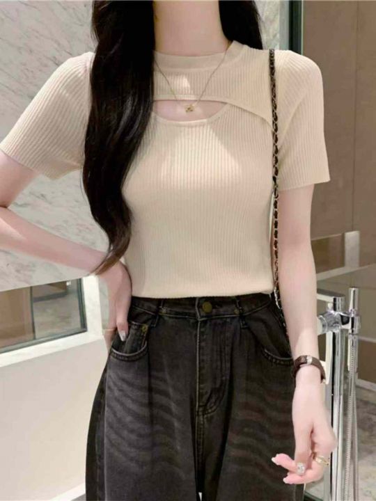 夏季新款设计感小众镂空不规则冰丝针织短袖,独立包装...