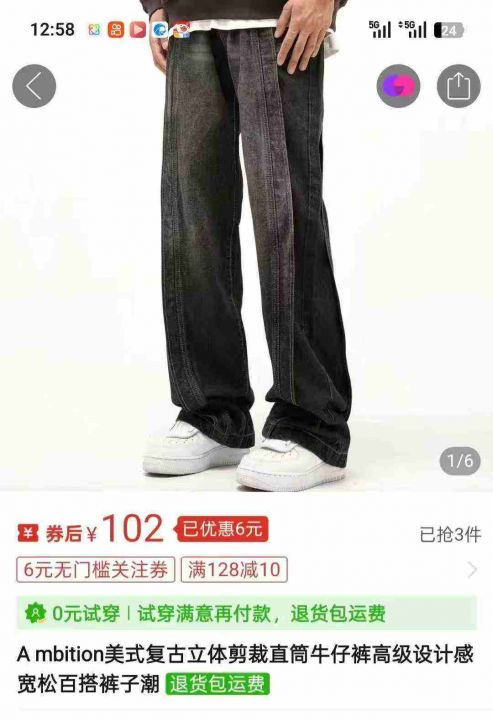 [發]男款牛仔裤600件 美式高街复古高级感独立包装有...
