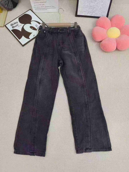 高腰牛仔直筒裤显瘦小个子加绒深蓝美式豹纹直筒烟管裤180件,独立包装带吊...