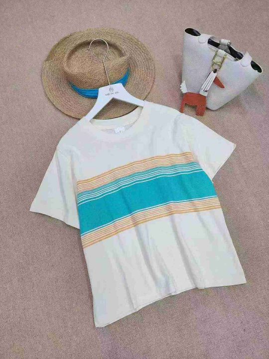[月亮]:7.5清256件[月亮]:简约条纹拼色休闲纯棉包边...