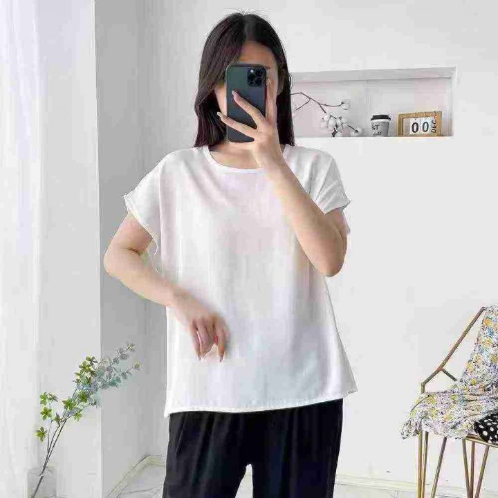[月亮]:夏季薄款绵绸宽松圆领上衣
